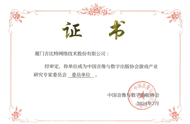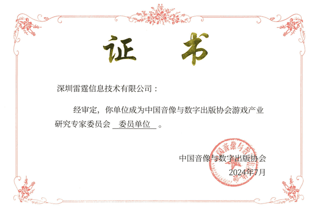 2024年7月25日,,中国音像与数字出版协会游戏产业研究专家委员会(以下简称“中国音数协游戏专委会”)成立大会在上海市召开,,,,厦门35273网络技术股份有限公司及其子公司深圳雷霆信息技术有限公司(以下统称“公司”)正式成为中国音数协游戏专委会委员单位。。。。